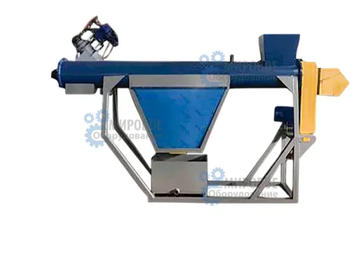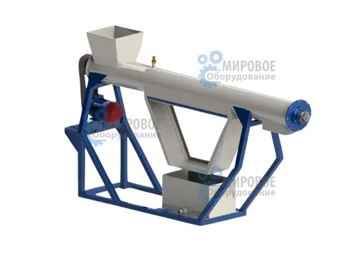 Оборудование оснащено шнеком с лопатками или винтами, которые при быстром вращении перемещают сырье вверх создавая трение. В узком корпусе при таком движении материал бьется друг о друга и о стенки, а подающаяся вода отмывает грязь. После отделения переработка и изготовление из вторсырья изделий упрощается и не вредит оборудованию.