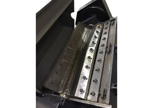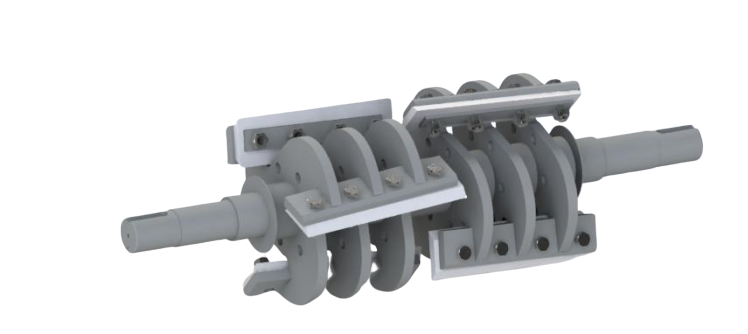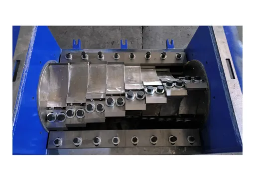 ⚡ Форма "ласточкин хвост" включает два коротких элемента, установленных под углом на дробилке, создавая V-образный профиль. Эта форма эффективна для захвата пленочных материалов и легкостенной твердой тары, работая как ножницы, плавно разрезая полимер без отскока. Обычно такие элементы ограничены шестью штуками, разделенными на три ряда. В общей сложности число режущих элементов может быть больше за счет дополнительных фиксированных лезвий. Измельчители этого типа включают модели SWP, PZO, DSNL.