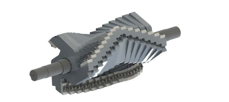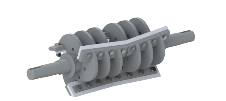 ⚡ Каскадное расположение - представляет собой плоские квадратные режущие элементы, которые монтируются ступеньками: каждый последующий элемент немного отстоит назад от предыдущего. Если таких элементов много, то их располагают так, что они направлены к центру и от него. Зачастую их делают двусторонними, что позволяет экономить на замене изношенных частей - достаточно их просто перевернуть. Такая конфигурация обеспечивает захват большого объема материала и его мягкое разрушение даже при высокой скорости вращения. В измельчителях может быть до 50 рабочих элементов, включая неподвижные. Модели с таким типом лезвий включают XFS, SWP, PZO.