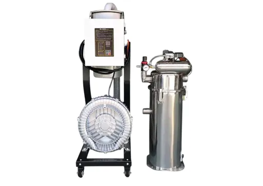 ✅ Автоматизация производственной линии переработки полимеров обеспечивается посредством эксплуатации оборудования различных типов. С этой целью в комплекс оборудования включается помимо прочих пневмозагрузчик. Он позволяет в автоматическом режиме подавать сырьё порошкового типа или гранулированные материалы в необходимом объёме в различные установки. Особая конструкция пневмозагрузчика гранул позволяет при небольших затратах энергоресурсов обеспечить высокую насыпную плотность. Работа оборудования обеспечивается за счёт коллекторного электродвигателя мощностью 1,5 кВт или выше.